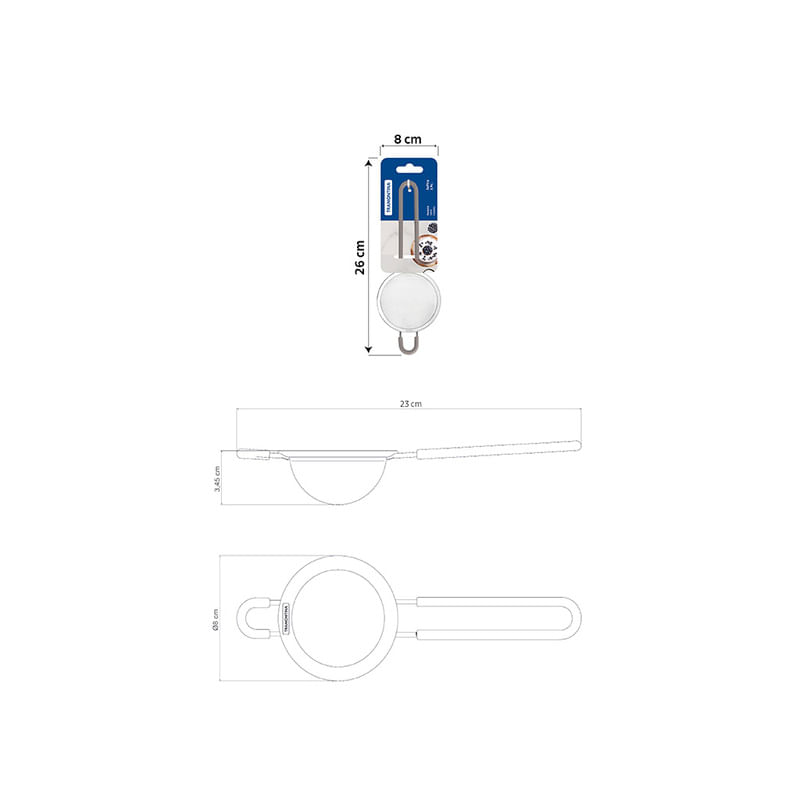 Colador Tramontina Softta en Acero Inoxidable con Mango y Asa en Silicona Gris 8,8 cm