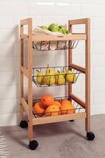 CocinaAccesorios para ServirCarro De Frutas Tramontina De Madera Teca Con 3 Canastas