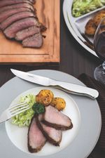 A los que les gusta un buen asado tambien les gusta un bello cuchillo. El diseño es sofisticado y lleva mucha elegancia a la mesa. Tenedores con dientes pulidos en la parte interna, con formato apropiado para la boca y bordes redondeados para proporcionar mas comodidad en el uso. De acero inoxidable, altamente durable, mantiene las caracteristicas originales, preservando la belleza, la higiene y la durabilidad del material. Cuchillo con lamina templada y filo con dientes, que le garantiza mayor durabilidad al filo de corte y mayor resistencia a la corrosion y, por su caracteristica de templabilidad, no araña la porcelana. Terminacion en alto brillo. Mango que se adapta mejor a la palma de la mano. Equilibrio armonico entre el mango y la lamina. Se pueden lavar diariamente en lavavajillas.