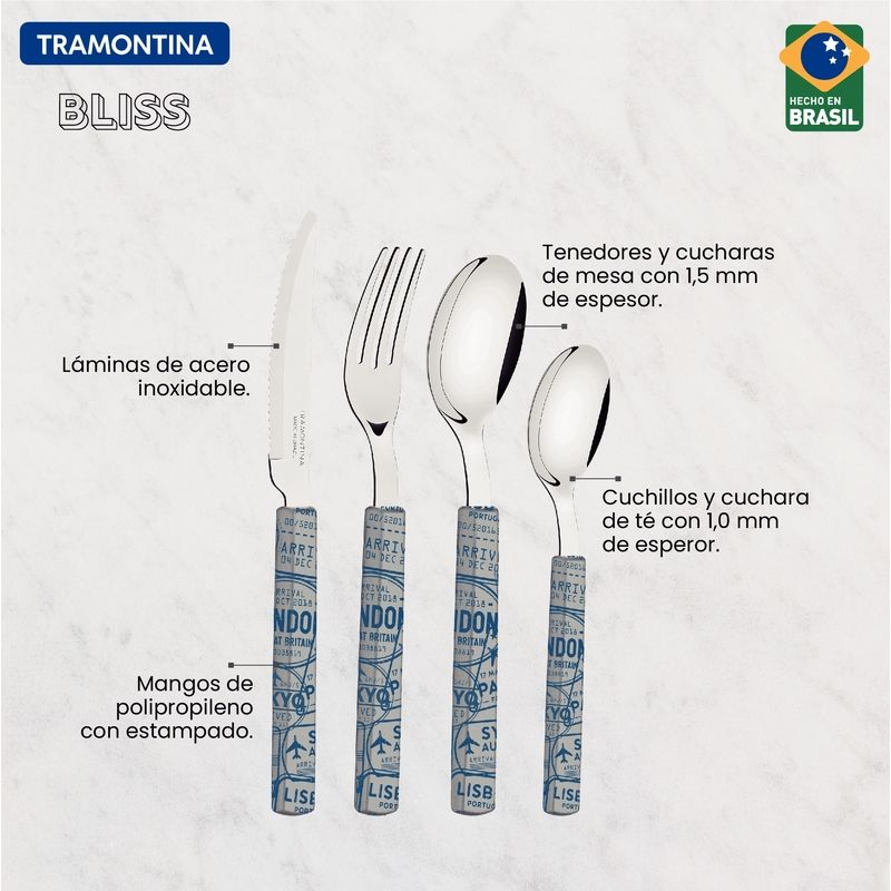 CocinaCubiertosJuego de CubiertosJuego de Cubiertos Tramontina Bliss con Láminas de Acero Inoxidable y Mangos de Polipropileno Gris Mediano 16 Piezas