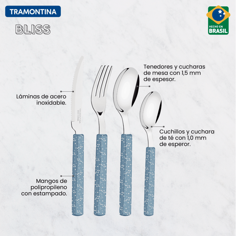 Juego de Cubiertos Tramontina con Láminas de Acero Inoxidable y Mangos de Polipropileno Azul Grisáceo 16 Piezas