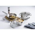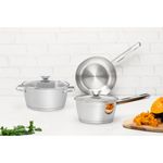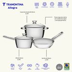 Hecha totalmente de acero inoxidable, no suelta ningún residuo en los alimentos, manteniéndolos sanos. Altamente durable, mantiene las características originales, conservando la belleza, higiene y durabilidad del material. El fondo triple (acero inoxidable + aluminio + acero inoxidable) distribuye el calor uniformemente, proporcionando una cocción más rápida y uniforme, ahorrando energía y manteniendo los alimentos calientes durante un tiempo mayor. Tiene un diseño diferenciado y moderno,con terminación en alto brillo. Su diseño limpio y sin ángulos facilita la limpieza. Tiene tapa de vidrio con salida de vapor y encaje perfecto. Se puede lavar diariamente en lavavajillas.Se pueden utilizar en cocinas eléctricas, a gas, de inducción y vitrocerámica.Tenga productos prácticos y diferenciados en su cocina. La batería de cocina Allegra de acero inoxidable con fondo triple de 3 piezas Tramontina, facilita su día a día y además embellece su cocina. Son 3 piezas con un diseño moderno que le da un toque de elegancia al ambiente. También cuenta con tecnología de fondo triple (acero inoxidable + aluminio + acero inoxidable), que distribuye mejor el calor, proporcionando una cocción más rápida y uniforme, y lo mejor, ahorrando energía. Las piezas están hechas de acero inoxidable, material que certifica alta durabilidad y buen gusto. Viene con una tapa con salida de vapor y además son muy fáciles de limpiar, se pueden lavar diariamente en el lavavajillas. Estas piezas impresionan por su versatilidad, se pueden utilizar en diferentes tipos de cocinas.