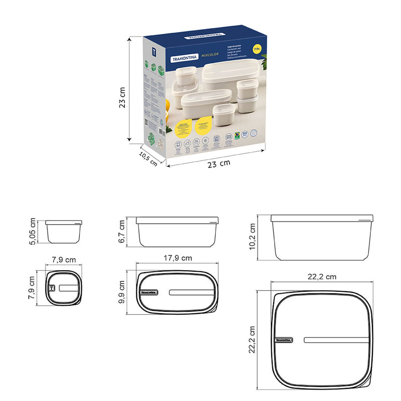 Juego de Recipientes Tramontina MixColor en Polipropileno Algodón con Tapa Transparente 7 Piezas