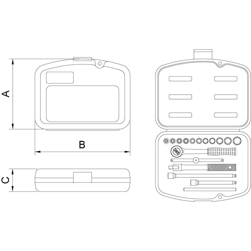 Maletín Con Dados Y Accesorios 1/4" 17 Piezas - Milímetros Tramontina Pro