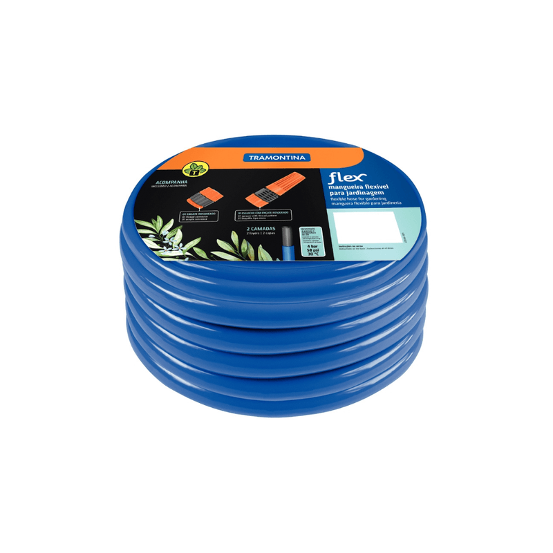 - Manguera flexible y de fácil manejo.- Tiene 25 m de largo.- Recomendada para situaciones de uso con presión de agua hasta 4 bar [58 psi] y temperatura hasta 30 °C.- Posee 2 capas de PVC.- Incluye 1 boquilla con chorro regulable y 1 adaptador con acople con rosca.- La boquilla tiene práctico sistema de regulado del flujo de agua con el regulador frontal.- La boquilla se conecta a mangueras con sistema de fijación con rosca.Cuidar el jardín tiene que ser una actividad placentera. Por eso, nada como tener una manguera totalmente adecuada y resistente. La manguera Flex de Tramontina le agrega eficiencia y calidad a su trabajo y le facilita la vida en el día a día. Fabricada con material resistente de alta flexibilidad, la manguera permitirá llegar a los puntos más difíciles en el momento de regar su jardín.